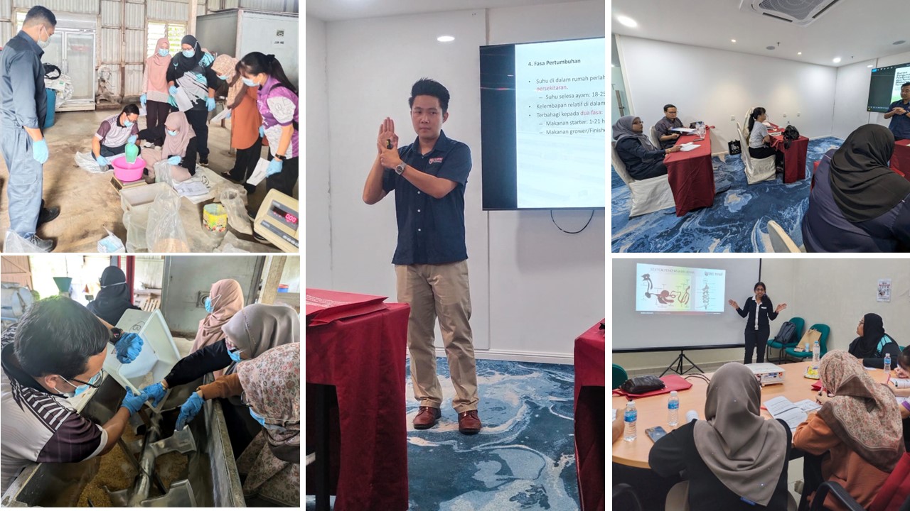 The Institute of Tropical Agriculture and Food Security (ITAFoS) in collaboration with Empirenet Ventures Training & Consultancy has organized a Poultry Farming Management and Feed Formulation Course on 2 - 4 October 2024. This course was attended by teaching staff from three Technical Secondary Schools (SMT) namely SMT Alor Setar, Kedah, SMT Melaka and SMT Johor Bahru. This program was held theoretically and practically by ITAFoS animal husbandry expert, Associate Prof. Dr. Eric Lim Teik Chung, who is also Head of Department in the Department of Animal Science, Faculty of Agriculture, Dr. Suriya Kumari Ramiah, ITAFoS Research Officer and Mr. Eddy Shahriza Jamein, as ITAFoS Agriculture Officer.